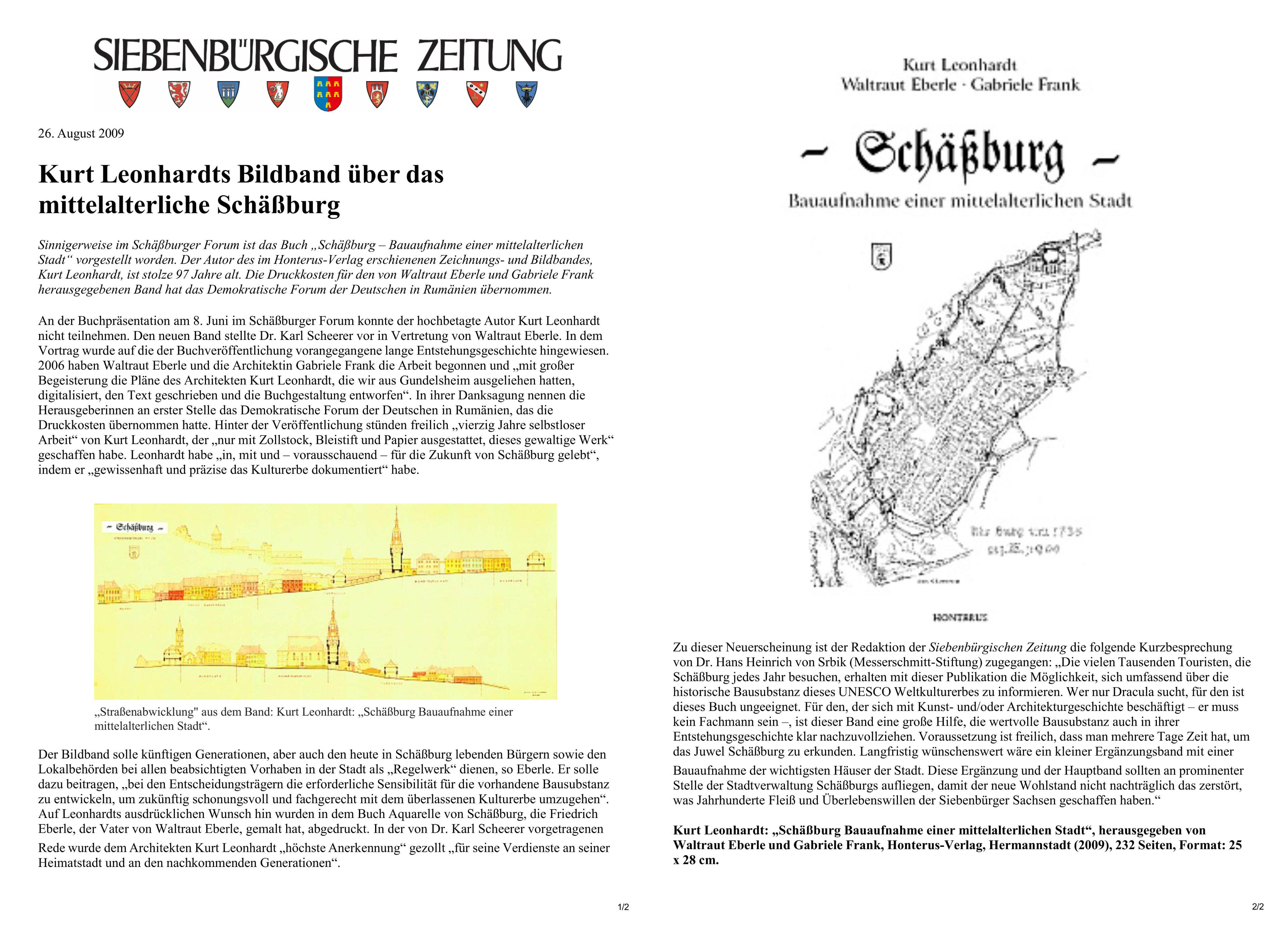 Leitfaden für die Renovierung von Kirchen und Kirchenburgen in Siebenbürgen siehe Beitrag in der Siebenbürgischen Zeitung vom 8. Februar 2011: https://siebenbuerger.de/go/10809A